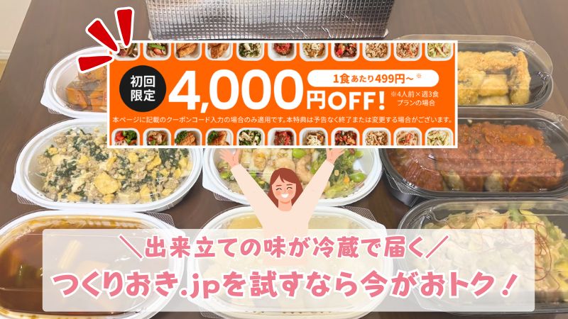 おいしさがポイントの冷蔵の宅配食、つくりおき.jp。平日がとにかく忙しい「共働き子育て家庭」の頼れる味方です。