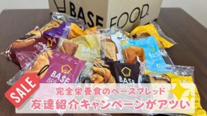 ベースブレッドを少量試したい方は、大幅割引が受けられるベースフード社(Base Food)の友達紹介キャンペーンの利用がおすすめです。