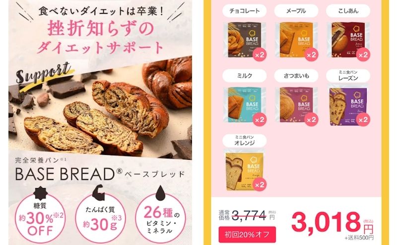 ※ベースブレッド14袋を購入、公式サイトは初回購入の場合。