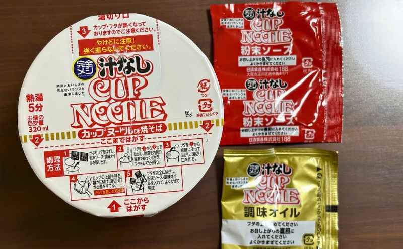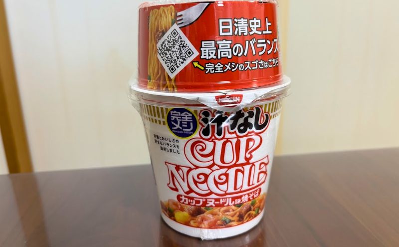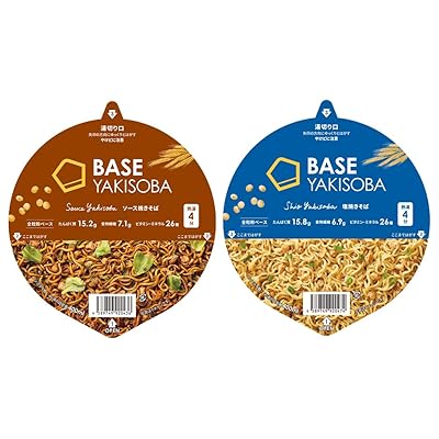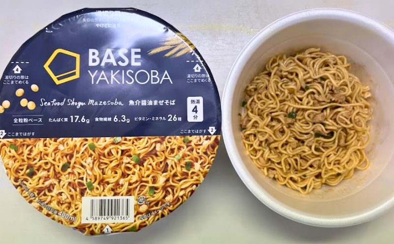 | 比較項目 | 完全メシ(汁なしカップヌードル) | ベース焼きそば(魚介醤油) |