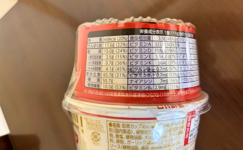 完全メシ汁なしカップヌードルの主原料は小麦粉(精白)。精白された小麦粉はビタミンやミネラルの大部分が製粉工程で失われます。