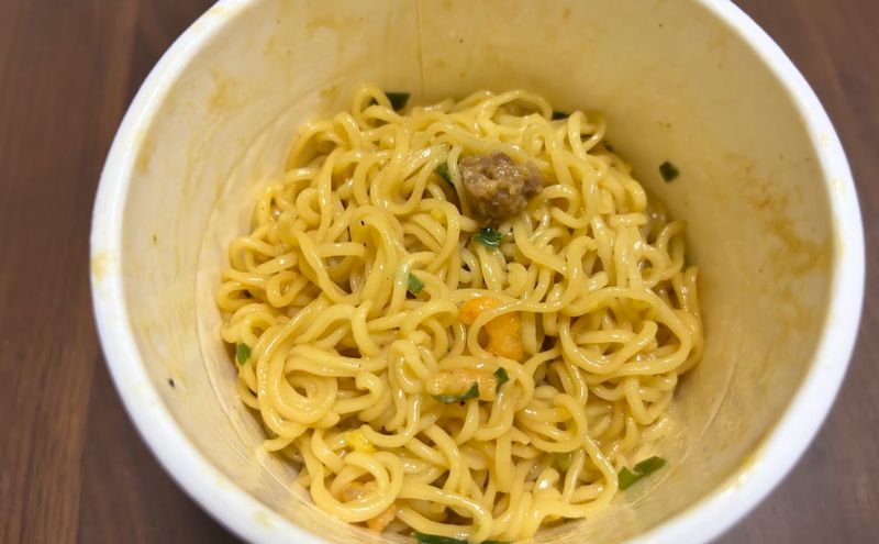 麺にコシがあり、具材も豊富で、見た目の華やかさは本家カップヌードルと遜色ありません。お湯を入れて数分、調理の手間もカップ麺と同じ感覚で食べられます。