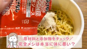 含まれる添加物はすべて国の安全基準の範囲内で使われています。菓子パンやカップ麺を買うくらいなら、完全メシのほうが栄養面で確実にプラスです。